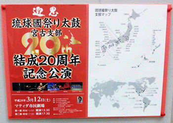 「琉球國祭り太鼓宮古支部結成20周年記念公演」の写真展示