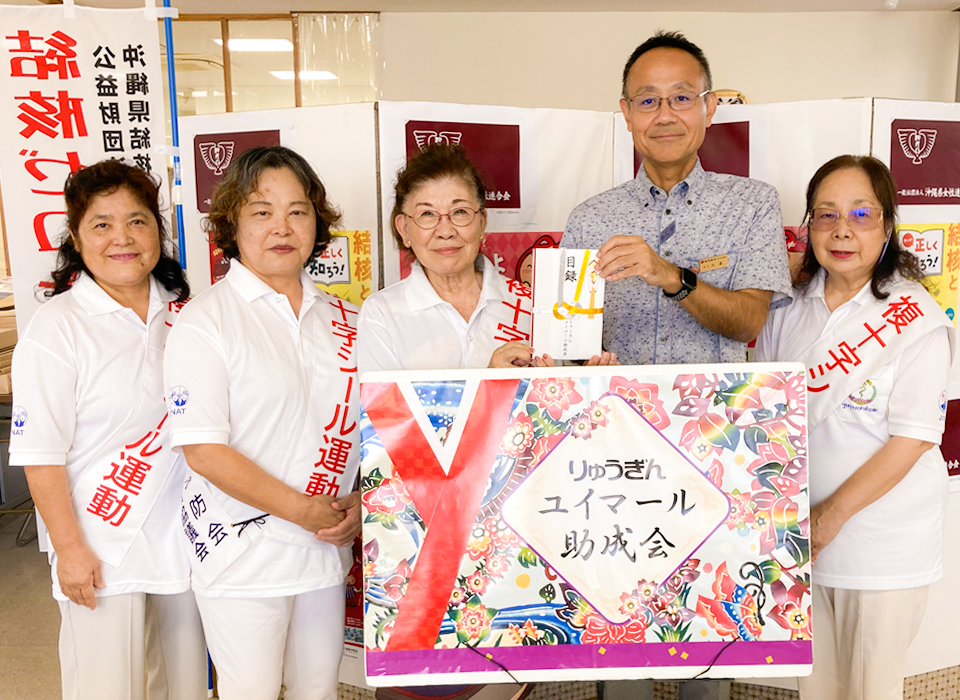 沖縄県女性連合会会長與那覇 信子 様那覇市女性連合会会長仲村渠 好美 様浦添市女性連合会会長照屋 冴子 様沖縄県女性連合会事務局諸見里 清江 様りゅうぎんユイマール助成会運営委員長比嘉 伸一郎