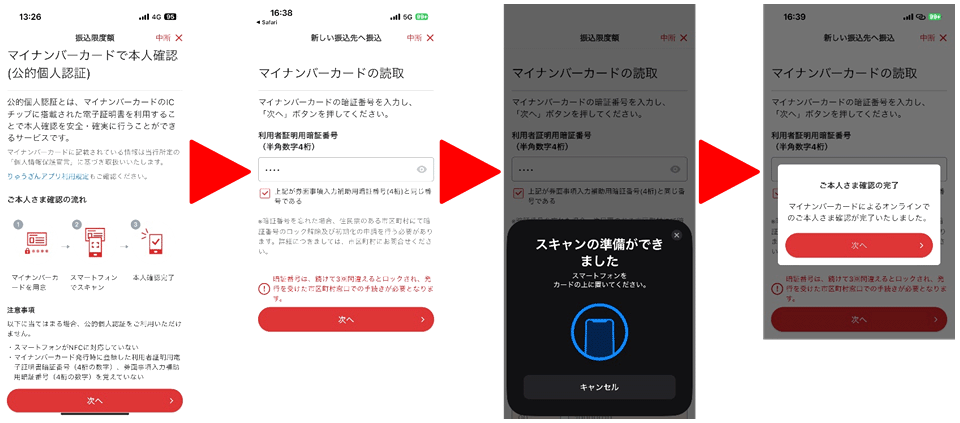 マイナンバーカードの公的個人認証サービスを利用した本人確認を行うことで、振込限度額の引き上げや限度額を超える高額振込が可能となりました。