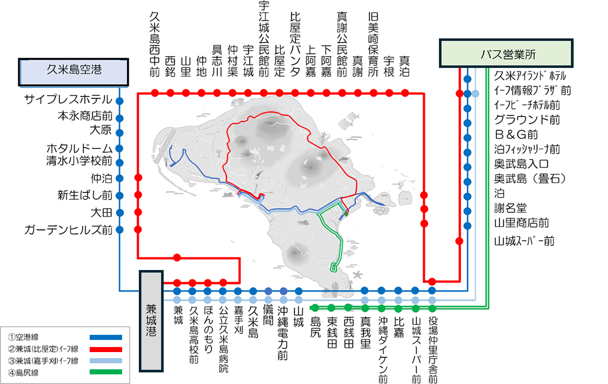 久米島町営バスが久米島内で運行する路線バス全線